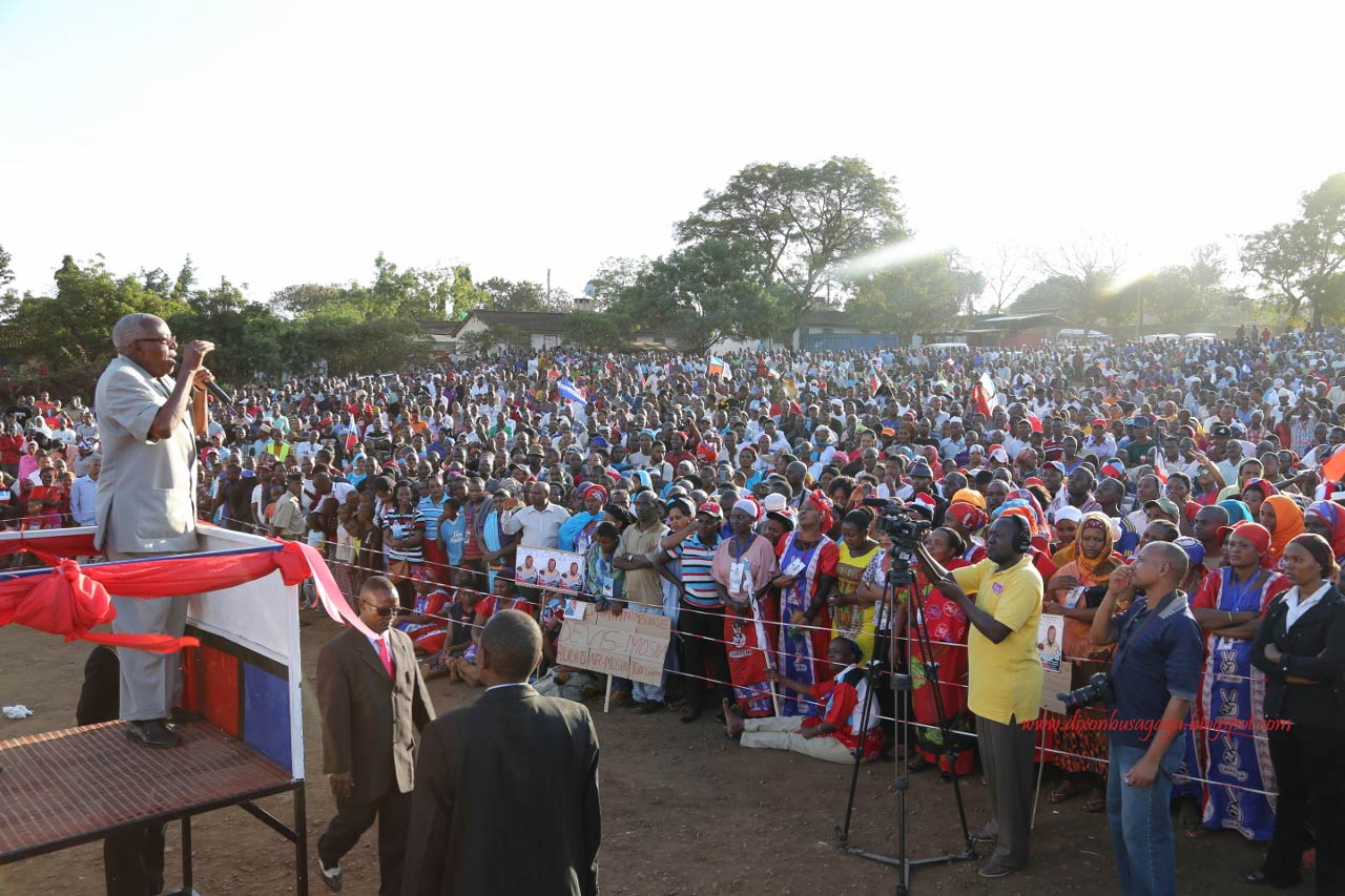 Wafuasi wa Vyama vinavyounda UKAWA wakiwashangilia Mgombea Urais wa Jamhuri ya Muungano wa Tanzania katika mwamvuli wa